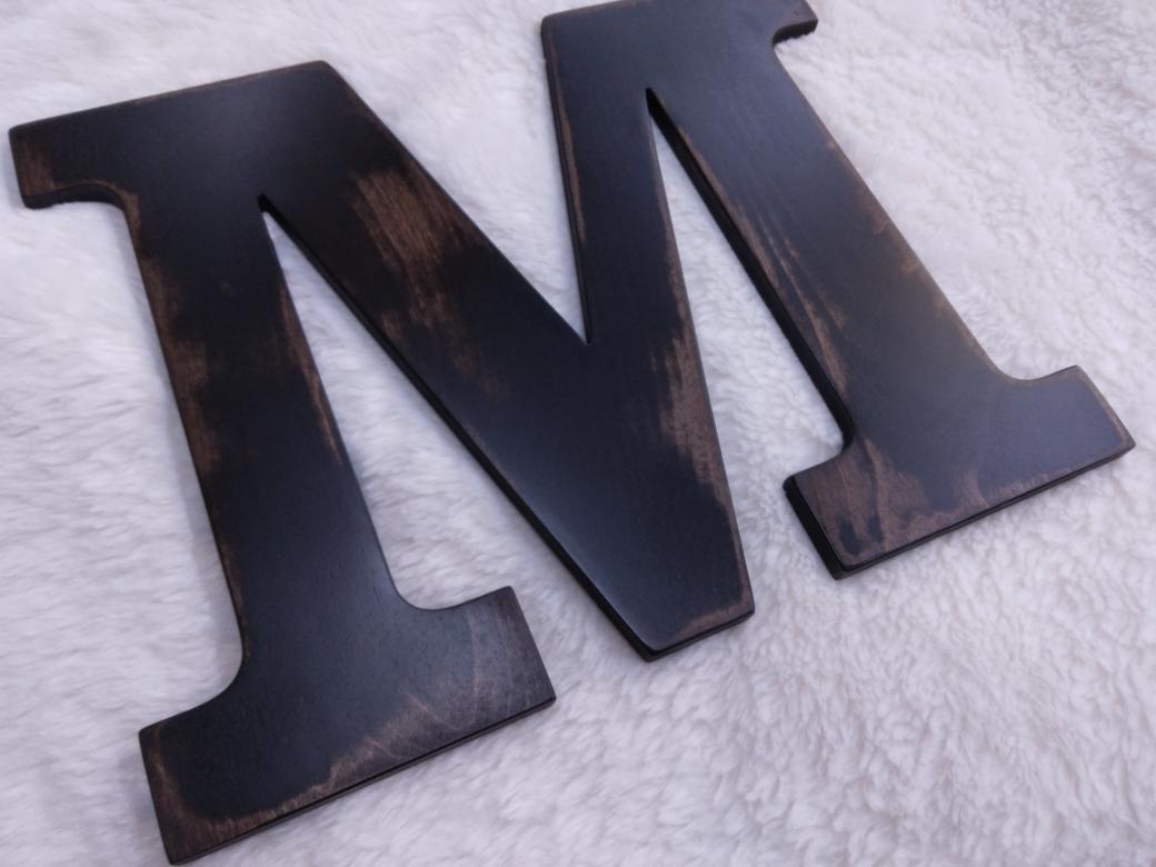 12 to 15 inch wooden letters, 1/2 or 3/4 inch thick available for order. Stain or paint options are available.